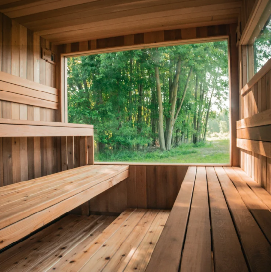 Our sauna isn’t like others —it’s a full luxury experience. Built with premium cedar, oversized panoramic windows, solar powered lighting, and modern fire-and-water design, it delivers authentic heat with a sleek, Scandinavian-inspired style.